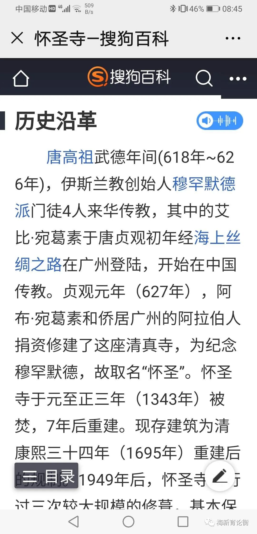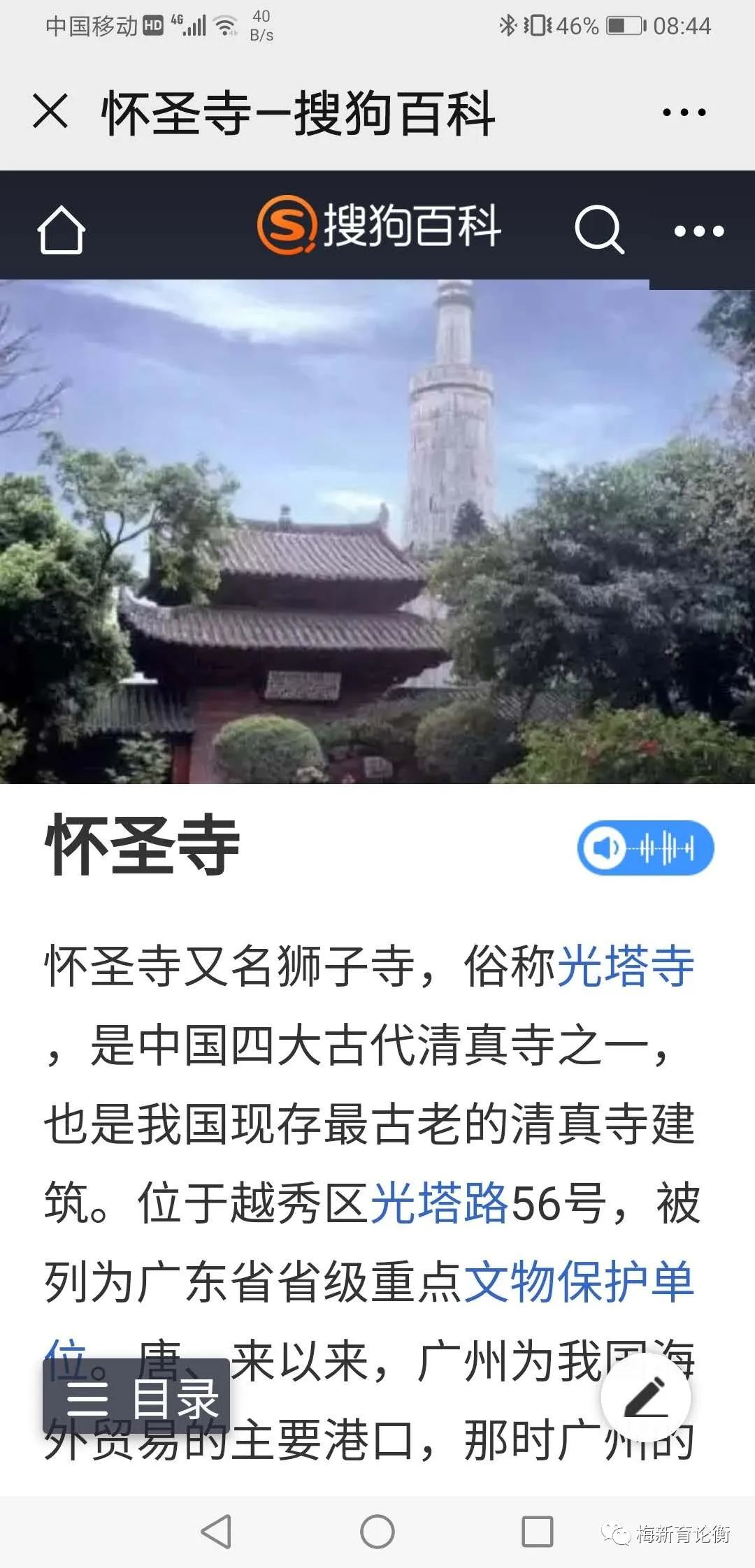 搜狗百科 “怀圣寺” 词条 “历史沿革” 是这样介绍广州怀圣寺来历的: